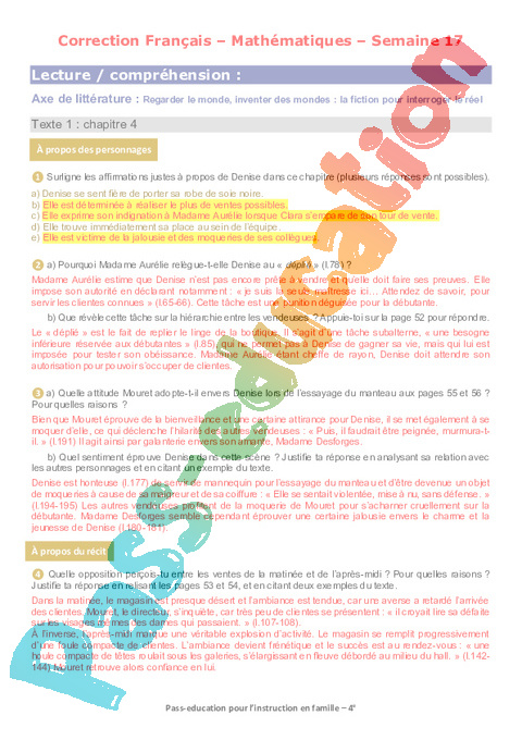 Corrections Semaine 17 – école à la maison IEF : 10eme Harmos pdf