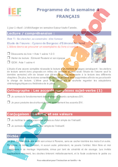 Semaine 4 – école à la maison IEF : : 10eme Harmos