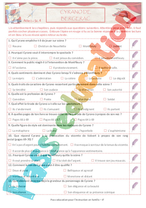1 Questionnaire Cyrano Act I Scène 1 à 3 – Semaine 4 – IEF : 10eme Harmos pdf