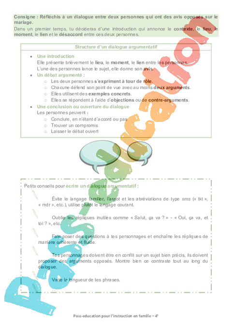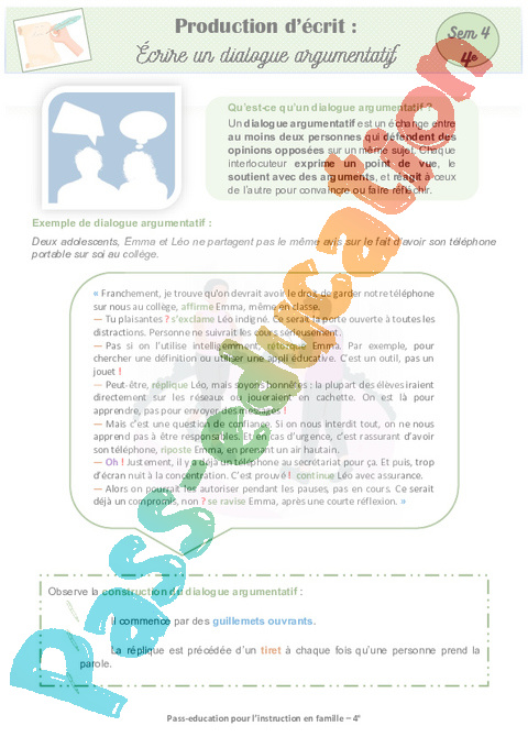 4 Expression écrite dialogue argumentatif – Semaine 4 – IEF : 10eme Harmos pdf