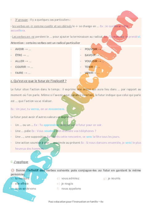 6 a Conjugaison – Le futur et ses valeurs – Semaine 4 – IEF : 10eme Harmos pdf