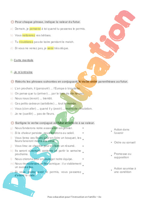 6 b Carte mentale – Conjugaison – Le futur et ses valeurs – Semaine 4 – IEF : 10eme Harmos pdf