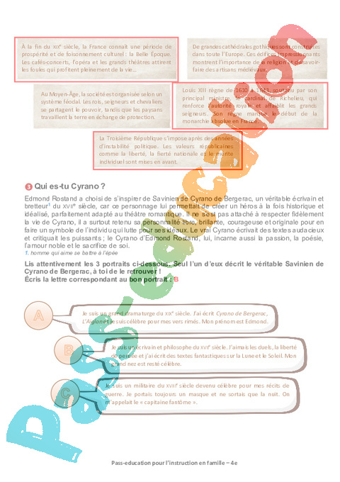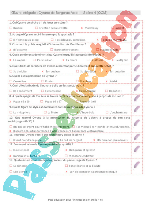 3 QCM Cyrano Acte I scène 4 – Semaine 4 – IEF : 10eme Harmos pdf