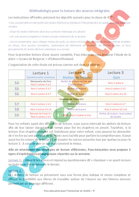Méthodologie pour la lecture des oeuvres intégrales – Semaine 4 – IEF : 10eme Harmos pdf