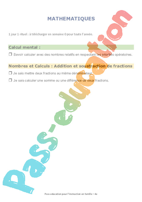 1 b Carte-mentale additionner-soustraire-fractions Semaine 9 IEF : 10eme Harmos pdf