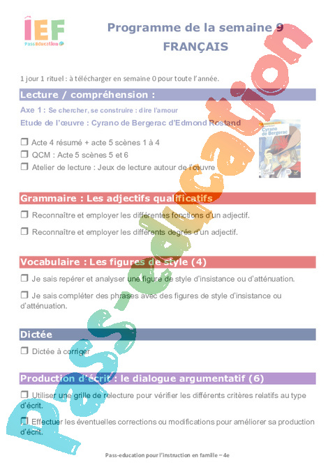 Semaine 9 – école à la maison IEF : : 10eme Harmos