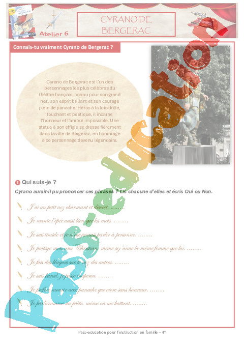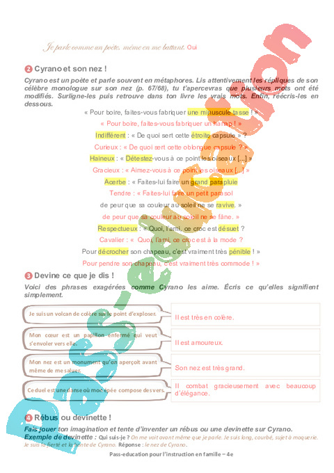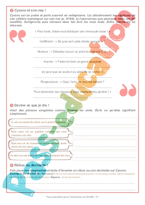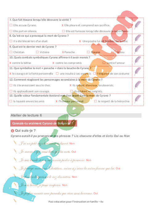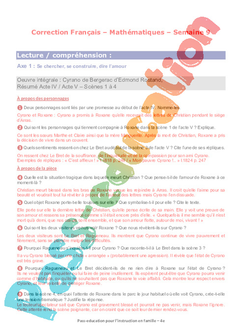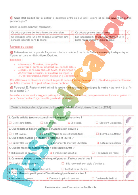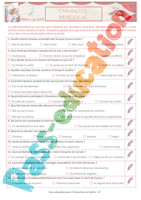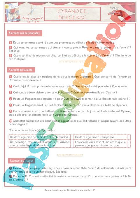 1 Questionnaire Cyrano Act IV Act V Sc 1 2 3 4 Semaine 9 IEF : 10eme Harmos pdf