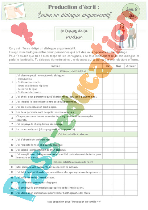 4 Expression écrite dialogue argumentatif relecture Semaine 9 IEF : 10eme Harmos pdf