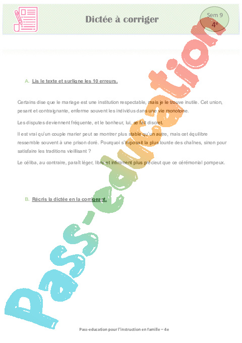 7 Dictée à corriger Semaine 9 IEF : 10eme Harmos pdf