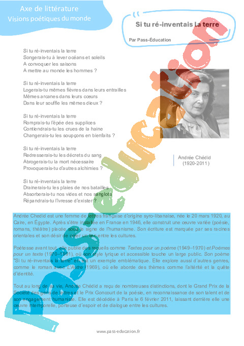 Littérature Si tu ré-inventais la terre (Andrée Chédid) : 11eme Harmos pdf