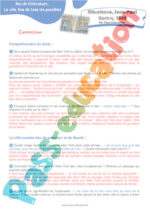 Correction Questionnaire Questionnaire Situations, Jean-Paul Sartre, 1949 : 10eme Harmos rtf
