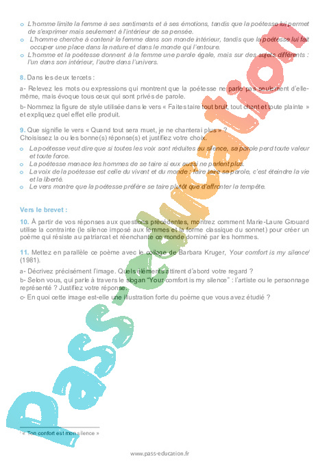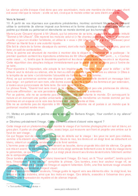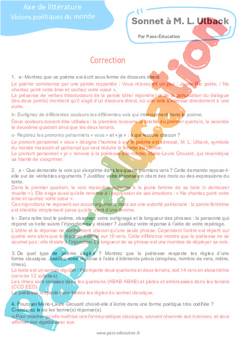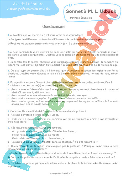 Correction Questionnaire Sonnet à M. L. Ulback : 11eme Harmos pdf
