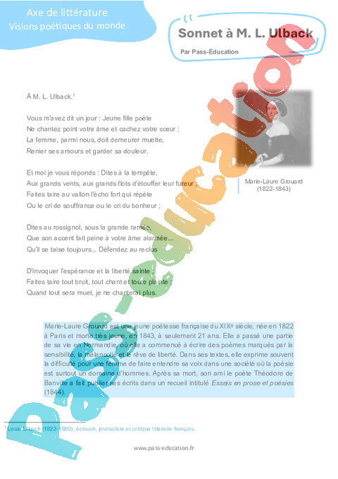Littérature Sonnet à M. L. Ulback : 11eme Harmos pdf