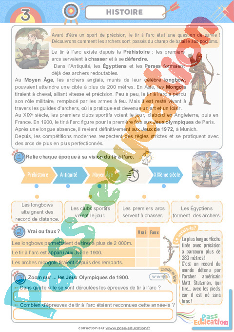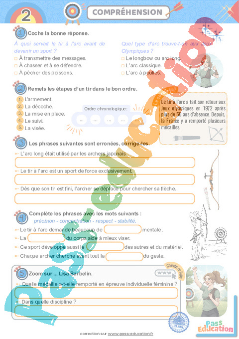 Correction Tir à l’arc – Cahier de vacances : 6eme, 7eme, 8eme Harmos pdf