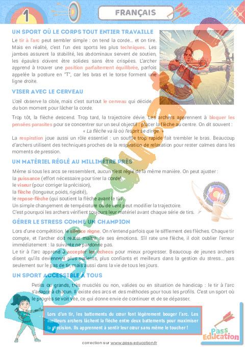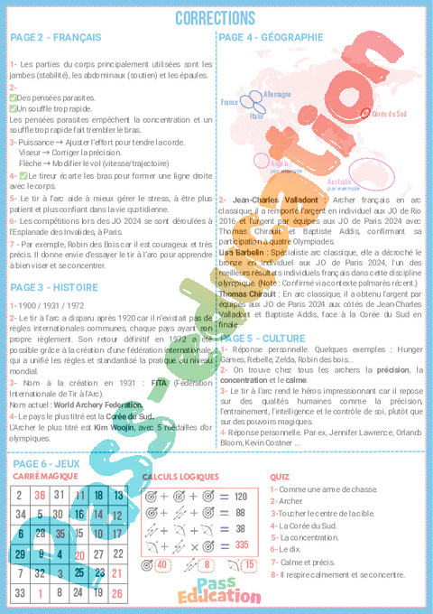 Correction Tir à l’arc – Cahier de vacances : 9eme, 10eme, 11eme Harmos pdf