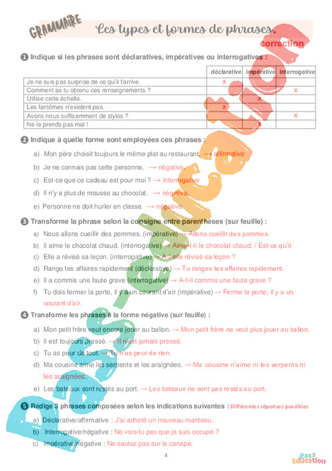 Indique si les phrases sont déclaratives, impératives ou interrogatives :