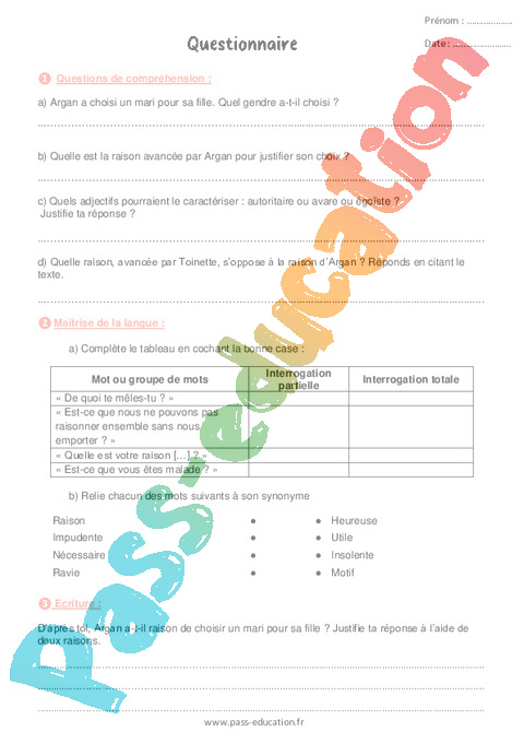 Lecture +Questionnaire Une maladie imaginaire : 8eme Harmos pdf