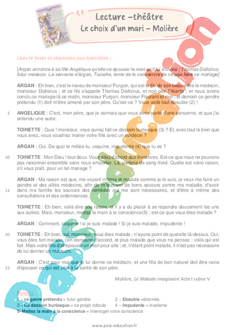 Lecture compréhension pour la 8eme Harmos – Théâtre : Une maladie imaginaire