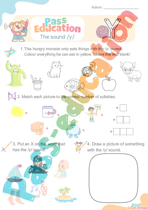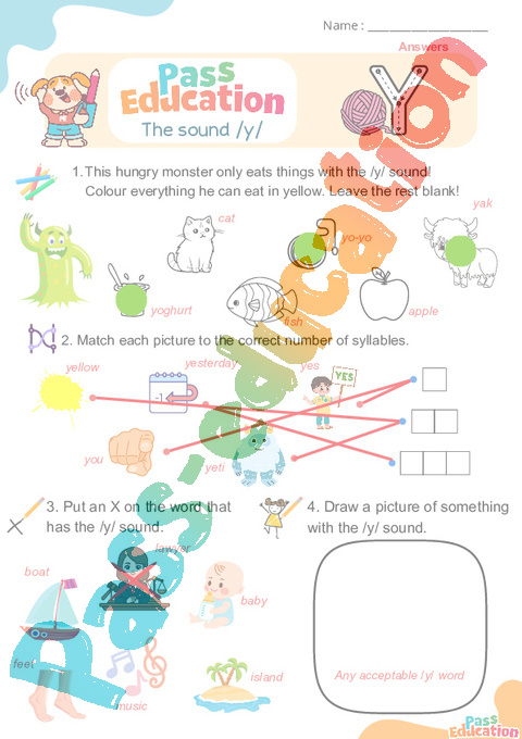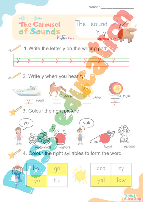 y correction Phonics worksheets pdf