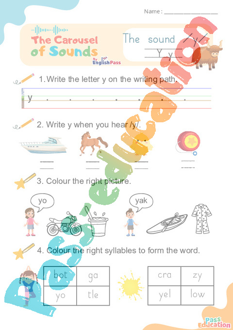 1.Write the letter y on the writing path.
